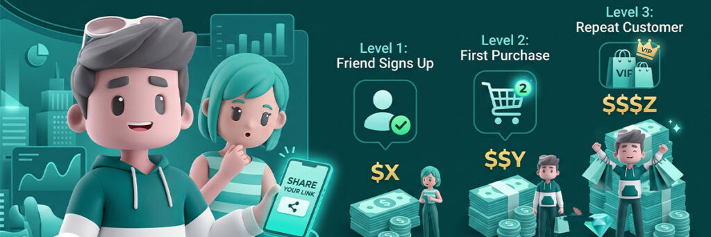 Example: “Earn 5% cashback on every purchase your referred friends make in the first 30 days.”